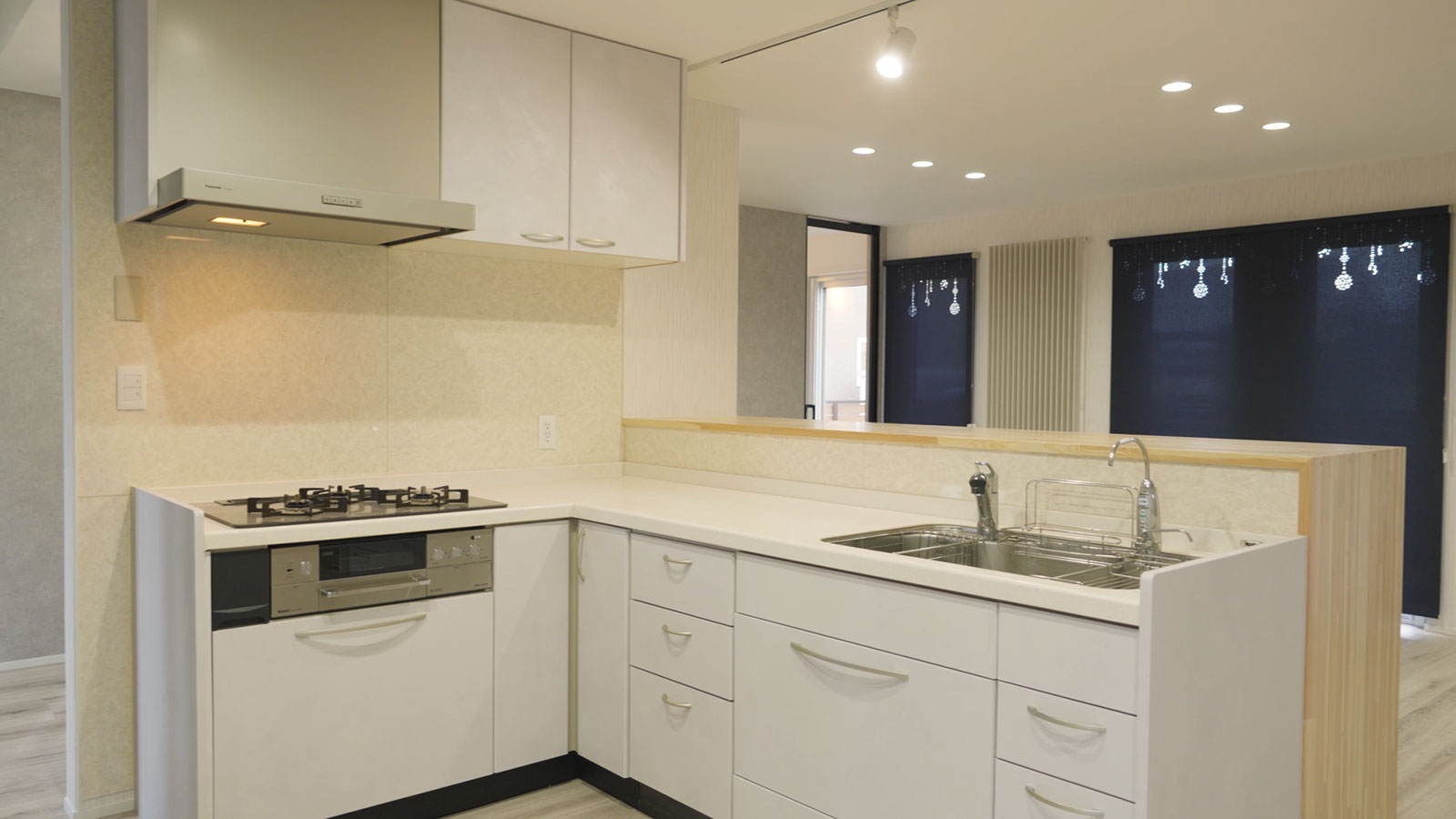 キッチンはリフォーム前と同じものを活かしつつ、天板を磨き上げ、引き出しにはリアテックシートを施工することで新品同様の仕上がりに。新規購入よりもコストを抑えながら、美しさと使い心地を両立しました。